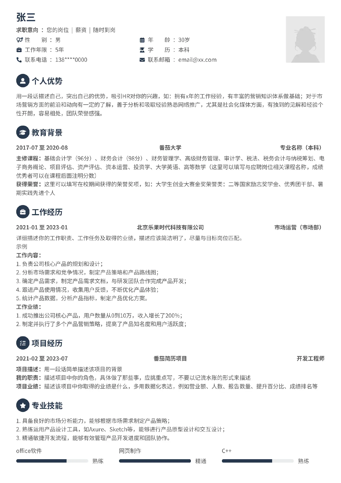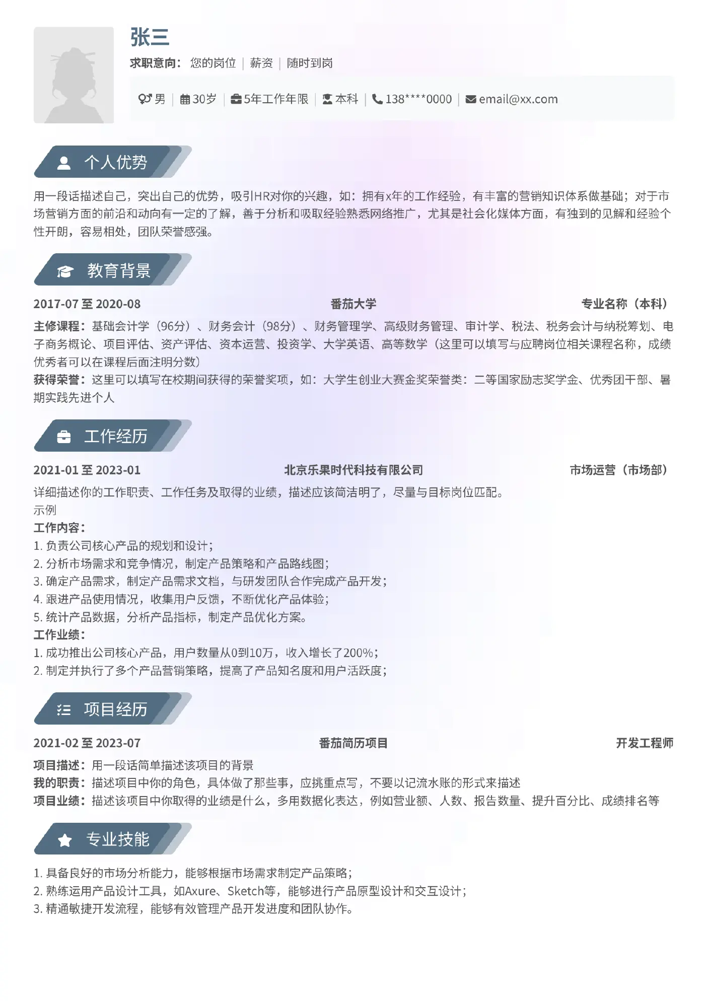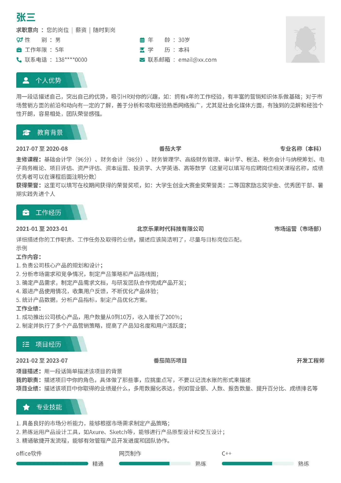 全站简历模板键切换,写一份内容即可拥各式各样的风格模版