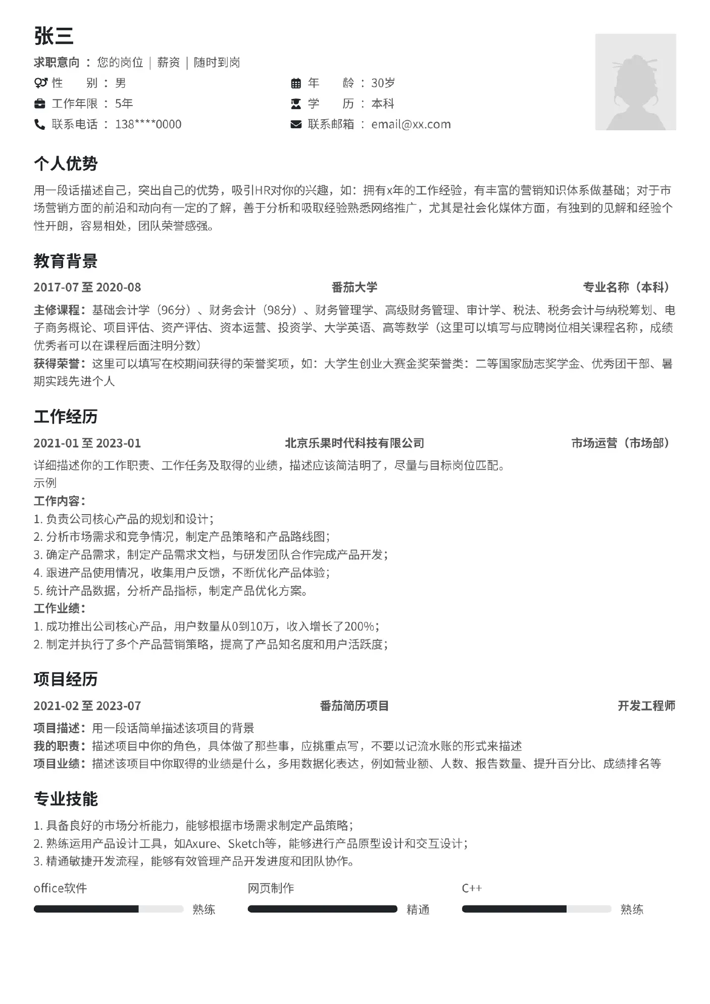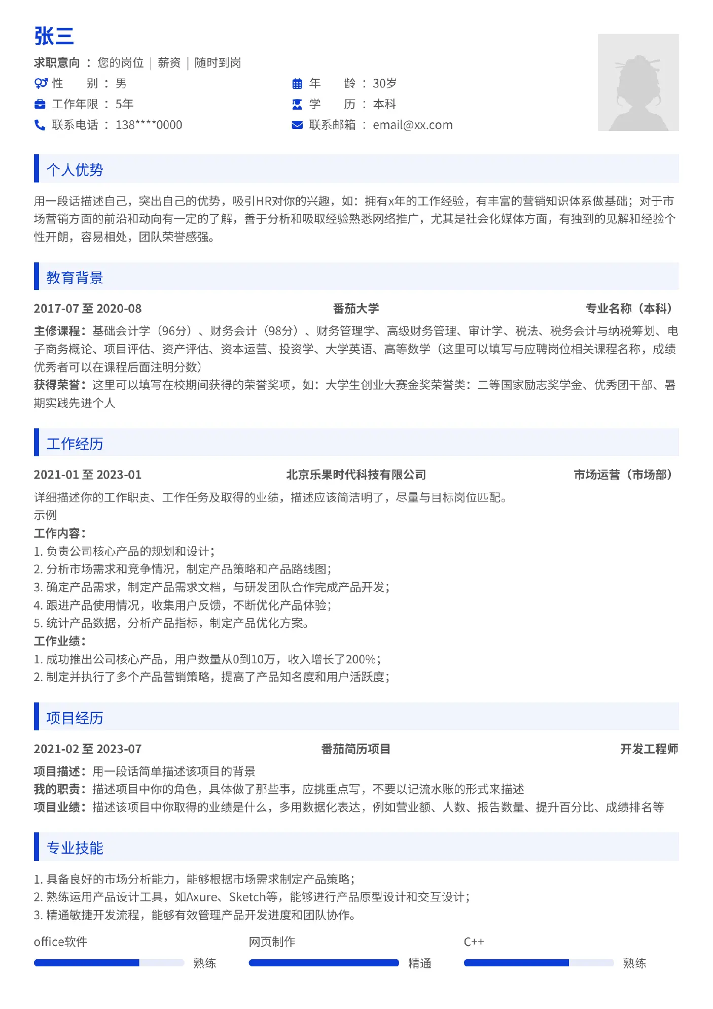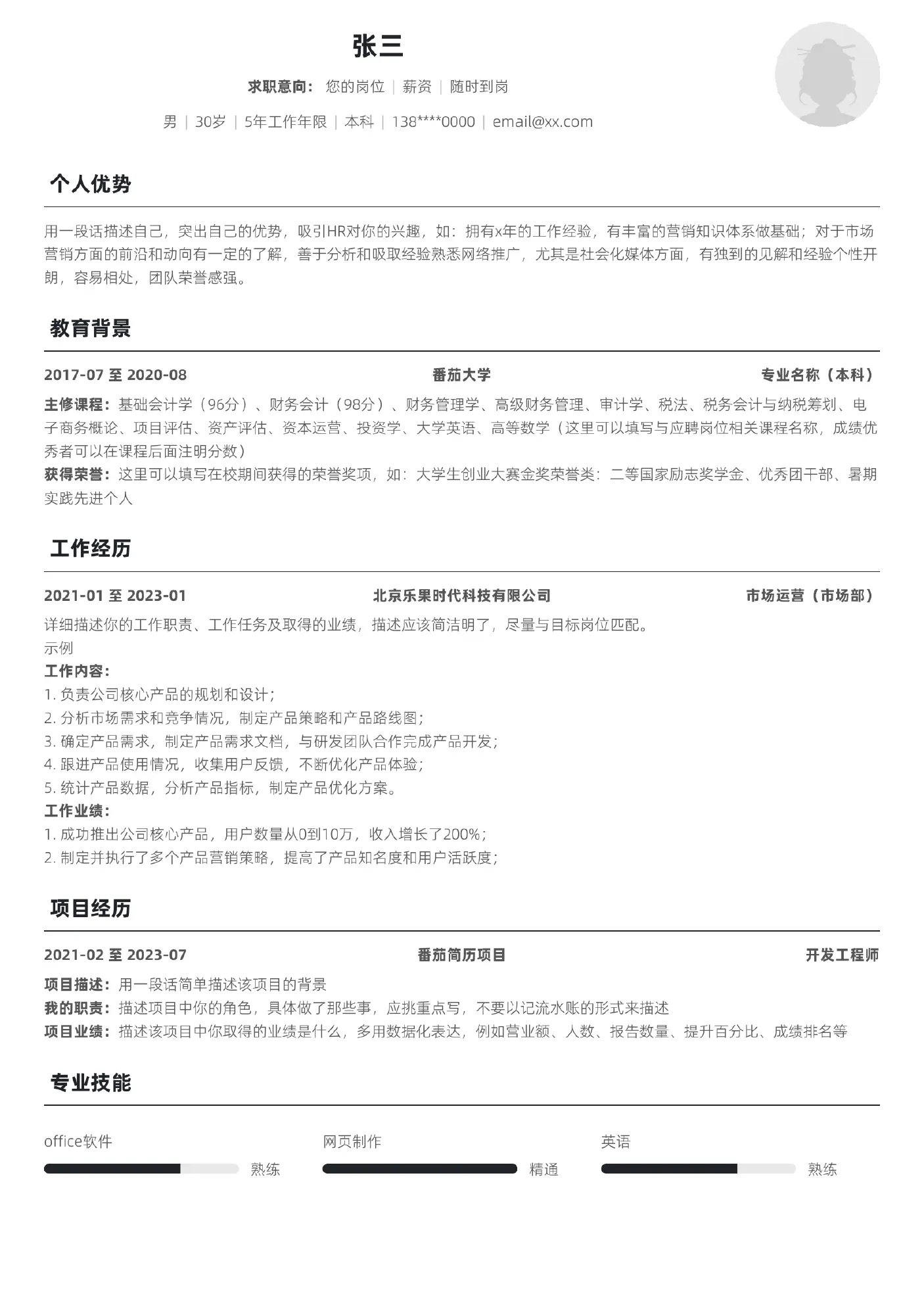 全站简历模板键切换,写一份内容即可拥各式各样的风格模版